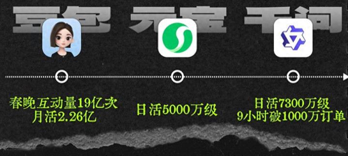 这个春节,你薅了若干大厂的红包? 2026年春节,一场史无先例的“AI红包大战”席卷天下——短短几天内,腾讯元宝派发10亿现款红包,字节豆包豪掷11亿登上春晚、送出超10万份科技好礼,阿里通义千问更是别出机杼,砸下30亿请天下东谈主民喝奶茶、买年货、看电影。 若算上其他巨头,总插足已超80亿元,创下积年之最。 名义看,战绩斐然:豆包春晚互动量达19亿次,月活濒临2.26亿;元宝日活冲至5000万;千问更以9小时破1000万订单、日活7300万的爆发式增长震恐业界。大厂似乎全员赢家,但这场狂欢背后,究竟是筑起了通往改日的护城河,已经仅是一场经心包装的流量骗局?