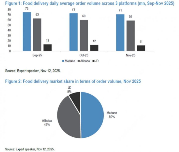 图源:摩根大通 京东的内容阐扬如故超出了投行们的预期:市集份额上个月就下滑到了5%。 {jz:field.toptypename/}竞对方面,淘宝发出的信号是:闪购三年不怕赔本。在AI春节大战,千问也不忘给闪购引流。 好意思团这个领跑者更不行能无聊。淘宝高抬高打,抖音相通来势汹汹。雷锋网称,抖音生服2025年全年支GMV超8500亿元,同比增长59%;2026年GMV增速目的仍然高达50%。 算上公告200多亿的预亏,好意思团2025年的净利润要比2024年下跌快要600亿。