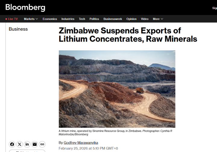 - 一分彩app 彭博社报: 津巴布韦告示即刻不容锂精矿出口, 华友钴业等中